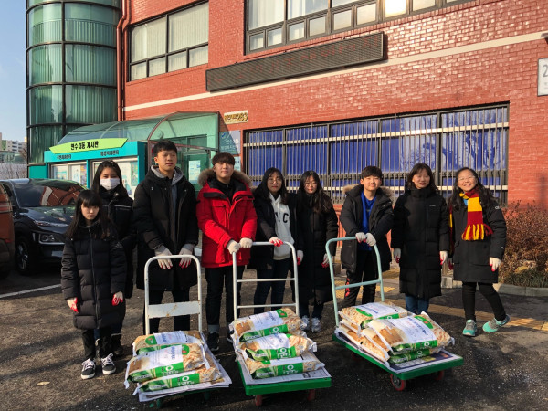 인천 연수구 송도1동 지역사회보장협의체는 최근 송도1동에 거주하는 윤소영씨로부터 어려운 이웃을 위한 쌀 380kg(38포)을 기탁받았다. 기탁받은 쌀은 학생봉사자 9명과 담당공무원이 함께 연수3동의 저소득가구를 직접 방문해 전달했다. 사진은 관계자들이 기념촬영을 하는 모습. (사진제공=연수구청)