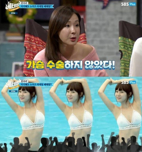 이어 이지혜는 "난 가슴 수술을 안 했다. 내가 성형으로 거짓말을 할 게 뭐가 있냐고 했더니 사장님이 기자분들도 궁금해하니까 너가 앞에 나서라고 하더라. 그래서 비키니 시연회를 열게 됐다"고 털어놨다.