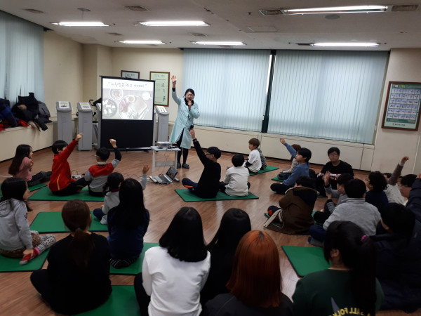인천 계양구보건소는 오는 31일까지 지역내 21곳 지역아동센터 아동들을 대상으로 '건강드림교실'을 운영한다. 사진은 16일 보건소 관계자가 아이들에게 교육을 진행 중인 모습. (사진제공=계양구청)