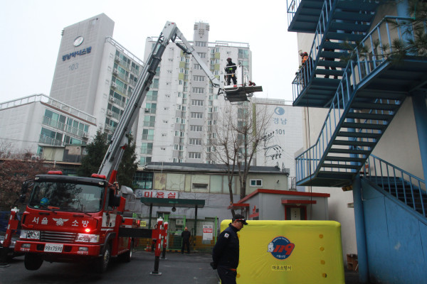 마포소방서, 고층건물 화재 대비 에어매트 훈련