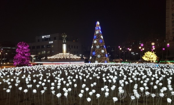 경기 안양시청이 경관 조명으로 단장돼 시민들의 새로운 휴식공간으로 탈바꿈했다. 시는 최근 시청 본관 앞 원형광장을 LED를 이용한 대형 트리, 장미정원 등으로 꾸며, 밤이면 아름다운 꽃물결을 이루고 있다.