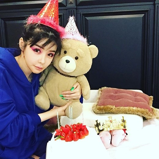 박봄이 파란색 후드티셔츠에 빨간색 고깔모자를 쓰고 'I LOVE YOU' 초가 꽂힌 케이크 앞에서 곰인형을 들고 있는 모습이 누리꾼들의 시선을 사로잡았다.