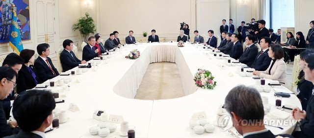 문재인 대통령이 23일 낮 청와대 인왕실에서 더불어민주당 원내지도부를 초청해 오찬을 함께하고 있다.