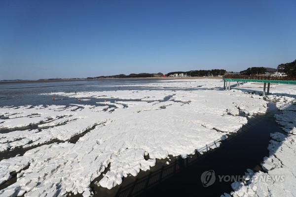 전국에 한파가 몰아친 23일 오후 경기도 화성시 궁평항 갯벌이 꽁꽁 얼어 있다.