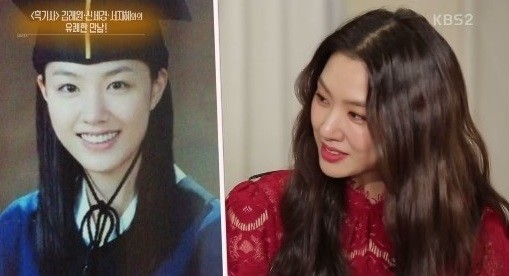 이후 등장한 사진이 서지혜의 대학교 졸업사진. 서지혜는 “메이크업을 안 했다”고 밝혔다. 이 말을 들은 김래원은 “학교 다니기 힘들었겠다”고 평했다.