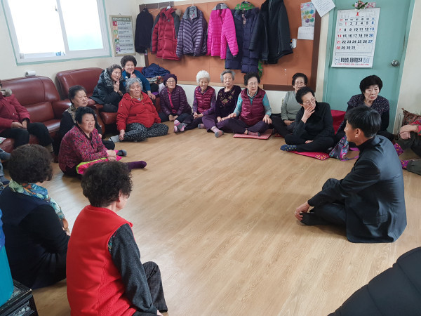 경기 동두천시 불현동지역사회보장협의체는 25일 지역내 승지골 경로당 이용 노인들을 대상으로 찾아가는 상담의 날을 운영했다. 사진은 협의체 관계자가 노인들과 이야기를 나누고 있는 모습. (사진제공=동두천시청)