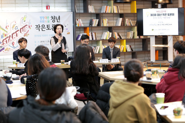 25일 서울 양천구 창업디딤누리에서 지역내 예비 청년 창업가 및 창업 전문가를 초청해 자유로운 분위기 속에서 청년창업 지원 방안에 대해 토론하는 '제3회 청년 작은 토론회'가 개최됐다. 사진은 토론회 진행모습. (사진제공=양천구청)