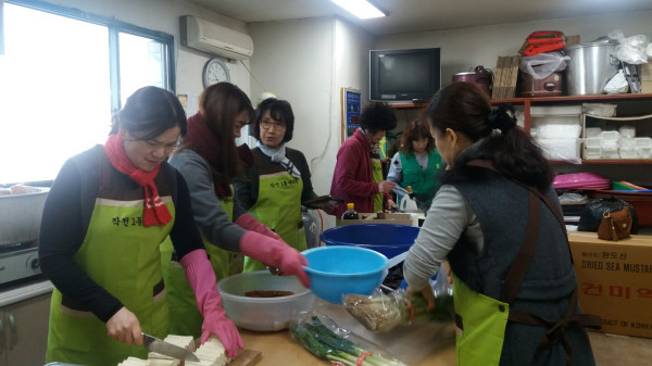 인천 계양구 작전1동 새마을부녀회는 지난 26일 부녀회원들이 직접 만든 밑반찬 20개를 지역내 홀몸노인 및 저소득가정 20가구에 전달했다. 사진은 부녀회 관계자들이 음식을 만들고 있는 모습. (사진제공=계양구청)