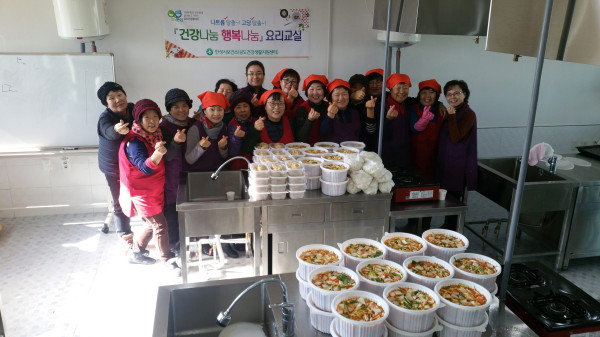 경기 안성시보건소 공도건강생활지원센터는 지난 24일 ‘건강나눔 행복나눔요리교실’에서 만든 저염 나박김치와 김치 손만두를 지역내 저소득 취약계층 30가구에 전달했다. 사진은 반찬 전달에 앞서 요리교실 관계자들이 기념촬영을 하는 모습. (사진제공=안성시청)