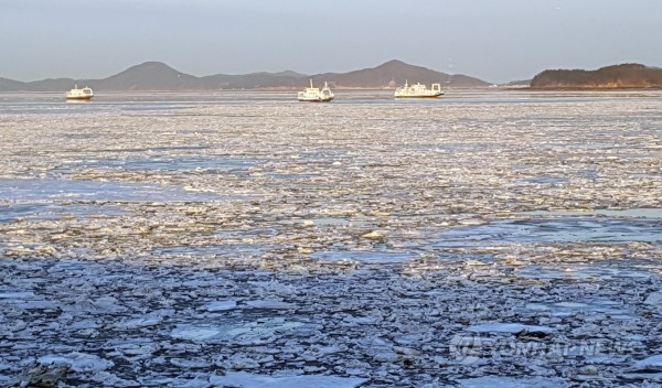 수도권기상청 인천기상대가 30일 정오를 기해 인천과 강화군에 내려졌던 한파주의보와 한파경보를 모두 해제한 가운데 중구 삼목선착장 인근 해상이 유빙으로 가득차 있는 모습이다. 31일 아침 인천 지역 최저기온은 영하 5도로 오늘보다 올랐다가 2월1일 영하 8도로 다시 떨어질 것으로 수도권기상청은 내다봤다.