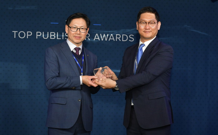 | ▲ 서울 강남구 소재 르메르디앙서울에서 열린 ‘2017 상위 앱 퍼블리셔 어워드(App Annie Top Publisher Awards 2017)’에서 (왼쪽)김남열 NH농협은행 스마트금융부장이 (오른쪽)이상재 앱애니 한국지사장과 함께 수상을 기념해 기념촬영을 하고 있다.(사진제공=NH농협은행) | ||