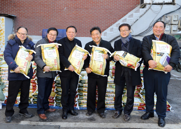 금천구는 최근 시흥5동 주민센터에서 ‘사랑의 백미 나눔 행사’를 개최했다. 이날 행사에서는 시흥5동 소재 은행나무마트가 이웃을 돕기 위해 시흥5동(750포)과 시흥2동(650포) 주민센터에 각각 쌀을 기탁했다. 사진은 구청장 및 관계자들이 기념촬영을 하는 모습. (사진제공=금천구청)