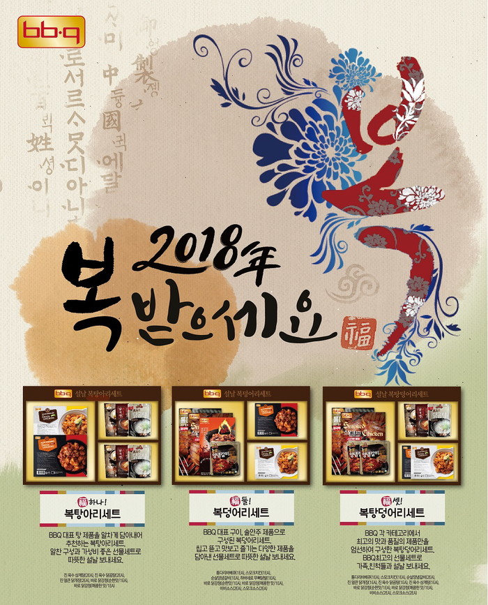 BBQ에 따르면 설 선물세트는 총 3종으로, ▲복탕아리세트(3만9000원) ▲복덩어리세트(4만9000원) ▲복탕덩어리세트(5만9000원)로 구성돼있으며, 전 제품 무료배송 서비스를 제공하고 있다.