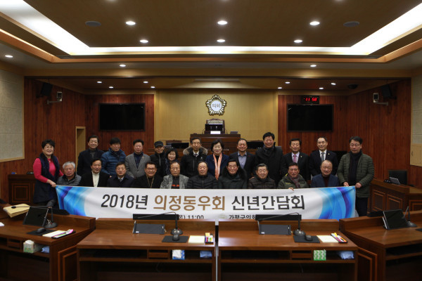 경기 가평군의회는 최근 군의회 특별위원회실에서 전직 군의원들로 구성된 '가평군 의정동우회' 회원들과 간담회를 열어 지역발전 방향을 논의했다. 사진은 이날 간담회 후 기념촬영 중인 전·현직 의원들의 모습. (사진제공=가평군의회)