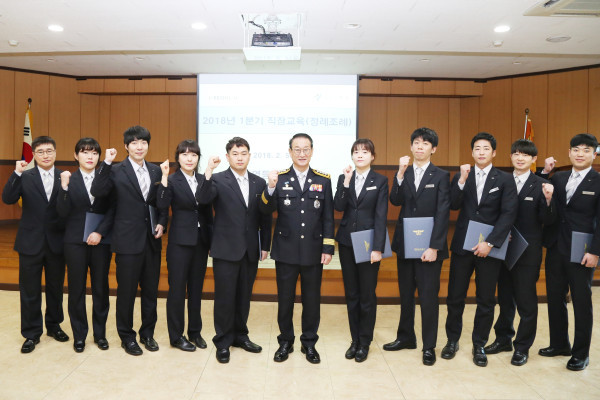 서울 영등포소방서는 5일 오전 올해 1분기 정례조례 시 유공 시민 및 직원 18명에 대한 하트세이버 수여식을 개최했다. 사진은 소방서장 및 수상자들이 기념촬영을 하는 모습. (사진제공=영등포소방서)