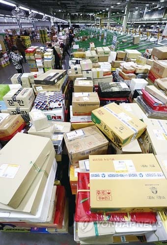 6일 오전 서울 광진구 동서울우편물류센터에서 직원들이 설을 앞두고 밀려드는 택배와 소포를 처리하느라 분주히 움직이고 있다.