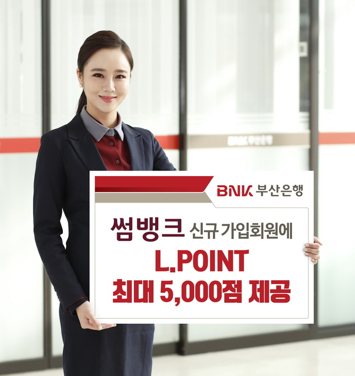 [부산=최성일 기자]BNK부산은행(은행장 빈대인)의 모바일 전문은행 ‘썸뱅크’가 롯데멤버스와 공동마케팅을 통해 신규 가입회원을 대상으로 최대 5,000점의 L.POINT를 제공하는 이벤트를 실시한다고 밝혔다.