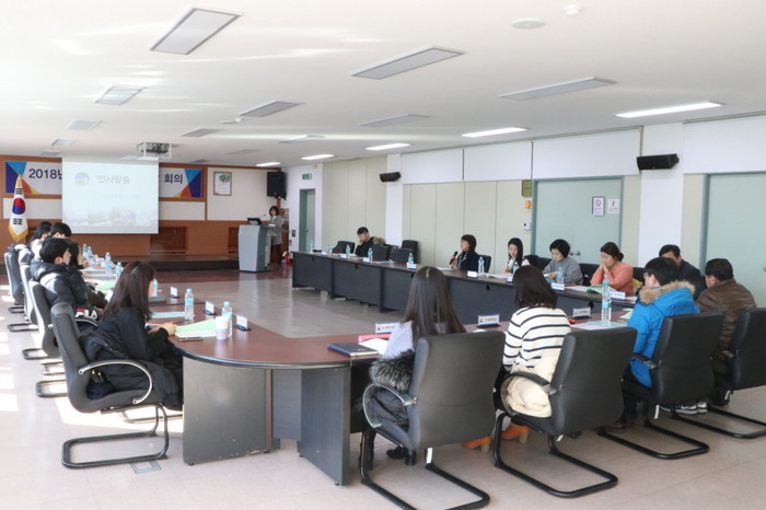 회의 내용은 병무행정안내 홍보영상 시청을 시작으로 병무행정 전반에 대한 설명, 군 입영신청 방법, 재학생입영연기 제도, 사회복무요원 소요제기 적극 협조 당부, 2018년 달라진 병역제도 소개의 순서로 진행되었다.