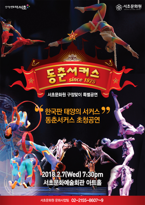 이번 공연은 서초구와 서초문화원의 공동 주최로 열리는 것으로, 90분 가량 ▲쌍철봉 묘기 ▲자전거 묘기 ▲모자 저글링 ▲수직 줄타기 ▲의자탑 쌓기 ▲농구공 묘기 ▲7명의 남성이 링을 향해 비상하는 링체조 등 15개 프로그램을 22명의 아티스트들이 선보인다.