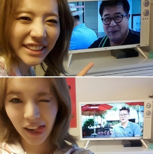 써니는 자신의 인스타그램에 "우리 아부지랑 나랑 통했다. 아이컨택 짤 투척! 오늘 밤 날 보러와요. 8시 40분 tvN!"이라는 글과 함께 사진을 게재했다. 공개한 사진에는 써니가 tvN '꽃보다 할배'가 방송되는 화면 앞에서 브이를 그리는 모습이다.