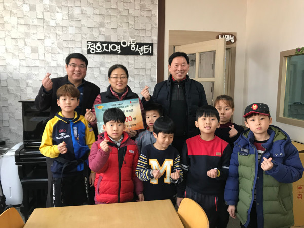 경기 오산시 대원동 지역사회보장협의체가 이달까지 한시적으로 꿈터·청호지역아동센터에 난방비를 지원한다. 사진은 최근 열린 '난방비 기탁식'에서 지역사회보장협의체 및 센터 관계자, 어린이 등이 기념촬영을 하는 모습. (사진제공=오산시청)