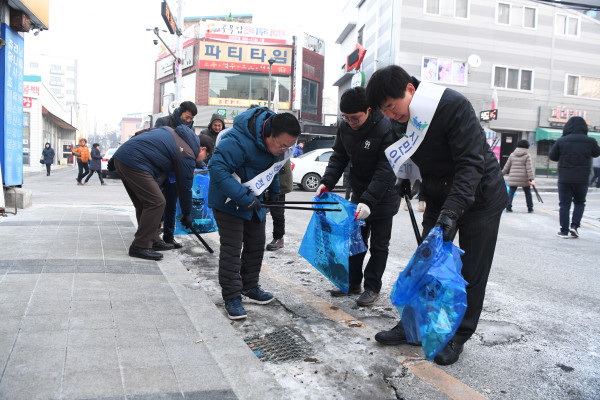 경기 양주시 회천1동은 7일 민족 최대 명절인 설과 2018 평창 동계올림픽을 맞아 전 지역을 대상으로 가로환경 정비를 실시했다. 사진은 참여자들이 쓰레기를 수거하고 있는 모습. (사진제공=양주시청)