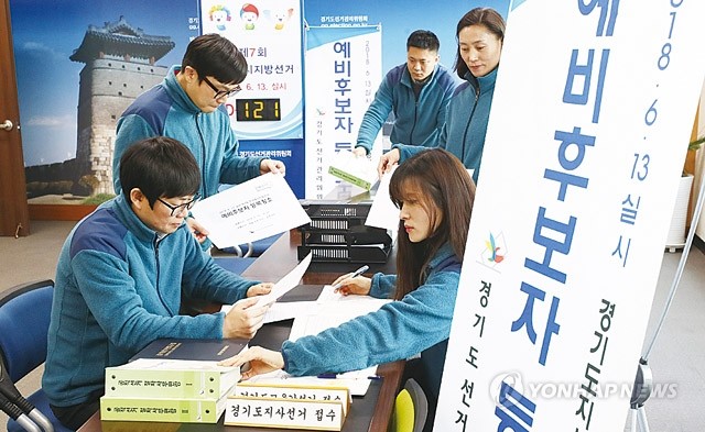 제7회 전국동시지방선거 예비후보자 등록 시작을 하루 앞둔 12일 오후 경기도 수원시 영통구 경기도선거관리위원회 예비후보자 등록장소에서 직원들이 업무를 보고 있다.