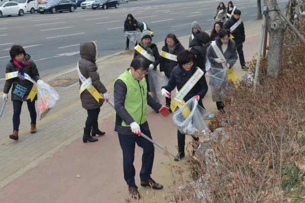 경기 수원시 영통구는 지난 9일 시민들이 깨끗하고 쾌적한 도심환경 속에서 즐거운 명절 연휴를 보낼 수 있도록 설맞이 일제 대청소를 실시했다. 사진은 참여자들이 쓰레기를 수거하는 모습. (사진제공=영통구청)