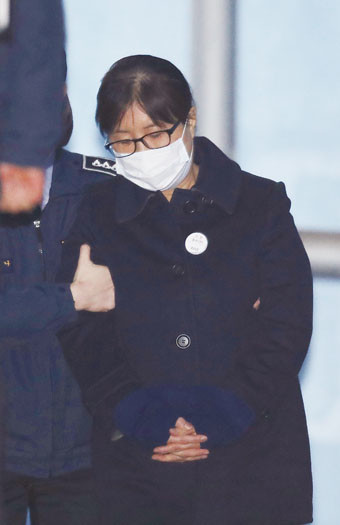 헌정 초유의 대통령 탄핵을 몰고 온 국정농단 사건의 주범이자 박근혜 정부 ‘비선실세’로 알려진 최순실씨가 13일 오후 서울 서초동 서울지방법원에서 열린 1심에서 징역 20년·벌금 180억원을 선고 받고 호송차로 향하고 있다.