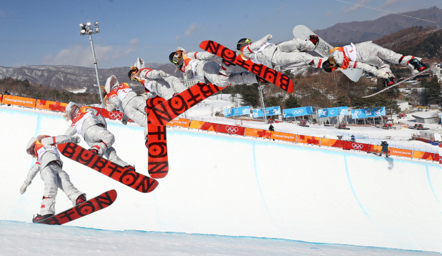 13일 강원도 평창군 휘닉스 스노 경기장에서 열린 2018 평창동계올림픽 스노보드 여자 하프파이프에서 금메달을 획득한 미국의 클로이 김이 결선 3차 시기에서 공중묘기를 선보이고 있다.