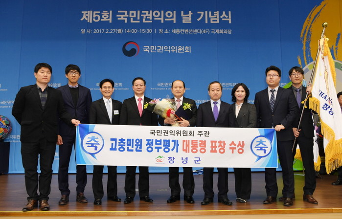 군은 2016년도 고충민원 처리실태 확인조사에서도 전국 1위로 최우수기관에 선정돼 '대통령 기관 표창'을 받은 바 있다.