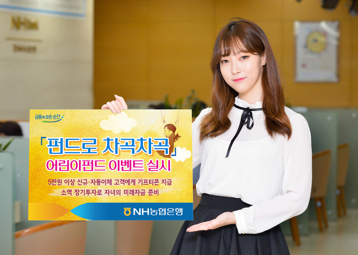 이와 관련, NH농협은행은 판매 중인 어린이펀드에 5만원 이상 신규 가입하고 자동이체를 신청하는 고객에게 가입금액에 따라 기프티콘(2600원~5500원·2종)을 지급한다.