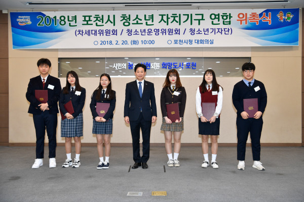 경기 포천시는 지난 20~21일 차세대위원회와 청소년운영위원회, 청소년기자단 소속 청소년들이 참석한 가운데 ‘포천시 청소년자치기구 연합 위촉식’과 함께 ‘청소년 자치기구 연합수련캠프’를 개최했다. 사진은 신임 위촉자 등의 관계자들이 기념촬영을 하는 모습. (사진제공=포천시청)