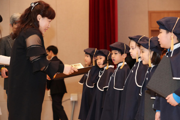 성동구가 26일 구청 3층 대강당에서 ‘제19회 민간어린이집 합동 졸업식’을 개최하고, 하니삐아제 어린이집을 비롯한 12곳 어린이집의 아동 69명에게 졸업장을 수여했다. 사진은 졸업식에 참석한 어린이들이 졸업장을 받고 있는 모습. (사진제공=성동구청)