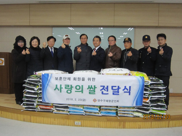 인천 연수구 재향군인회는 최근 지역내 보훈단체에 쌀(10㎏) 100포를 전달했다. 사진은 전달식에 참여한 관계자들이 기념촬영을 하고 있는 모습. (사진제공=연수구청)