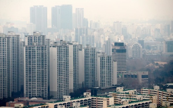 | ▲ 미세먼지 농도 '나쁨'을 기록한 27일 오전 서울 송파구 롯데월드타워에서 바라본 송파구 일대 모습.(사진제공=연합뉴스) | ||