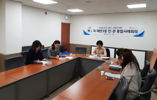 경기 수원시 영통구 매탄3동 맞춤형복지팀은 26일 '민·관 통합사례회의'를 개최했다. 사진은 참여자들이 취업에 어려움을 겪고 있는 대상자에 대한 회의를 진행하는 모습. (사진제공=영통구청)