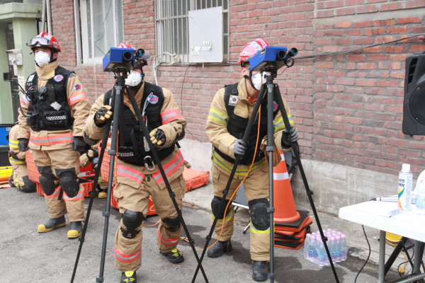 마포소방서는 27일 마포구 아현동의 재건축 지구에서 건물 붕괴사고 대비 합동훈련을 실시했다. 사진은 소방관들이 장비를 이용해 매몰된 요구조자 탐색 훈련을 하고 있는 모습. (사진제공=마포소방서)