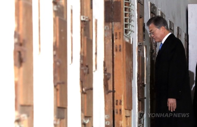 문재인 대통령이 1일 오전 서울 서대문형무소 역사관에서 열린 제99주년 3ㆍ1절 기념식에 참석하기에 앞서 옥사에 마련된 특별전시를 관람한 뒤 나오다 감옥을 살펴보며 생각에 잠겨 있다.