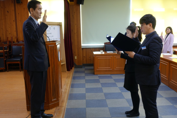 경북 구미교육지원청은 2일 대회의실에서 직원 100여명이 참석한 가운데 부패척결 및 공정하고 투명한 공직사회 조성과 ‘클린 명품 경북교육’ 구현을 위한 반부패청렴 다짐식을 가졌다. 사진은 관계자들이 선서를 하는 모습. (사진제공=구미교육지원청)