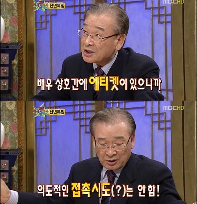 하지만 정반대로 여배우와의 베드신의 경우 최대한의 매너를 지켜왔다고 밝혔다. 이순재는 "베드신 연기는 상호 에티켓이다"며 "속치마를 이용해 가려주며 최대한 화면에 속살이 안보이게 배려를 해줬다"고 고백했다.
