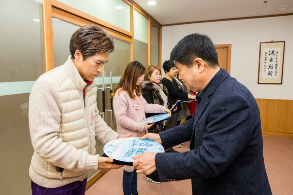 인천 계양구가 지난해 7월부터 운영해온 ‘효 실천 위생업소’ 46곳을 올해 56곳으로 확대·지정해 운영한다. 사진은 6일 올해 지정된 신규 10개 업소 관계자들이 지정증과 표지판을 받고 있는 모습. (사진제공=계양구청)