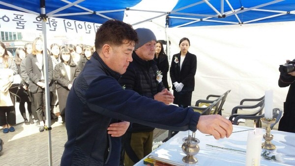 최근 (사)세계여성평화그룹(IWPG)과 세계여성평화인권위원회가 공동 주관으로 故구지인 양의 분향소를 구미시 인동 버스정류장 옆 마련하고 추모식을 진행했다. 사진은 시민들이 분향하는 모습.(사진제공=세계여성평화그룹)