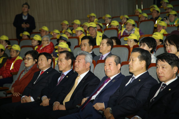 6일 오후 마포구청 2층 대강당에서 '2018년 노인일자리사업 발대식'이 열렸다. 이날 발대식은 노인일자리 참여 노인의 자긍심 고취와 소양교육을 위해 개최됐다. 사진은 참여자들이 사업에 대한 설명을 듣고 있는 모습. (사진제공=마포구청)