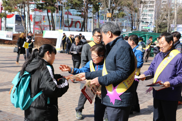 경기 동두천시는 지난 5일 오후 2시 지행역에서 분야별 다양한 주제로 안전총괄과, 동두천소방서, 지역자율방재단(바르게살기운동협의회, 특전동지회), 의용소방대 등 40여명이 참여한 가운데 제264차 안전점검의 날 캠페인을 실시했다. 사진은 참여자들이 시민들에게 홍보물은 건네는 모습. (사진제공=동두천시청)