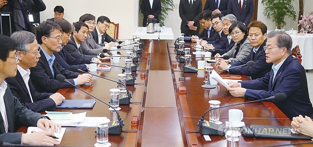 문재인 대통령이 12일 오후 청와대에서 열린 수석보좌관 회의를 주재하고 있다.
