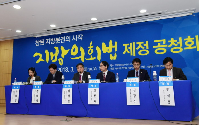 | ▲ ‘지방의회법 제정을 위한 공청회’에 참석한 패널들이 토론을 이어 나가고 있다.(사진제공=서울시의회) | ||