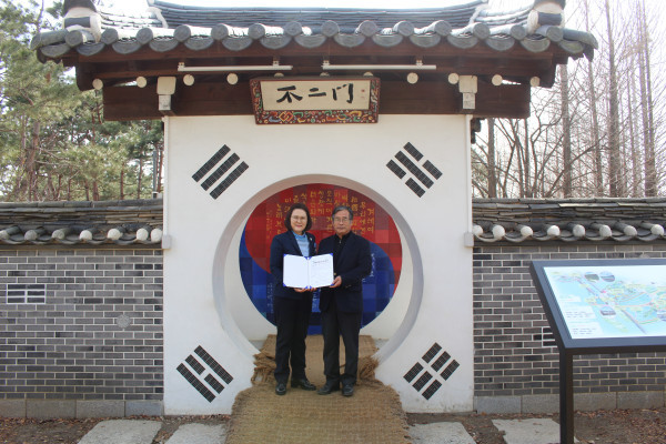 최근 경기 양평군 소재 정원이자 관광지인 세미원과 한국철도공사 양평관리역이 세미원 대표이사실에서 철도를 연계한 관광 활성화를 위한 업무협약을 체결했다. 사진은 관계자들이 업무협약 체결 후 세미원 입구에서 기념촬영을 하고 있는 모습. (사진제공=양평군청)