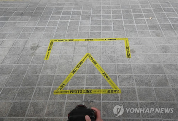 | ▲ 이명박 전 대통령의 검찰 소환을 하루 앞둔 13일 오후 서울 서초동 서울중앙지검에서 취재진이 포토라인을 설치, 시험촬영하고 있다. 이 전 대통령은 피의자 신분으로 소환되는 역대 다섯 번째 전직 대통령이다.(사진제공=연합뉴스) | ||