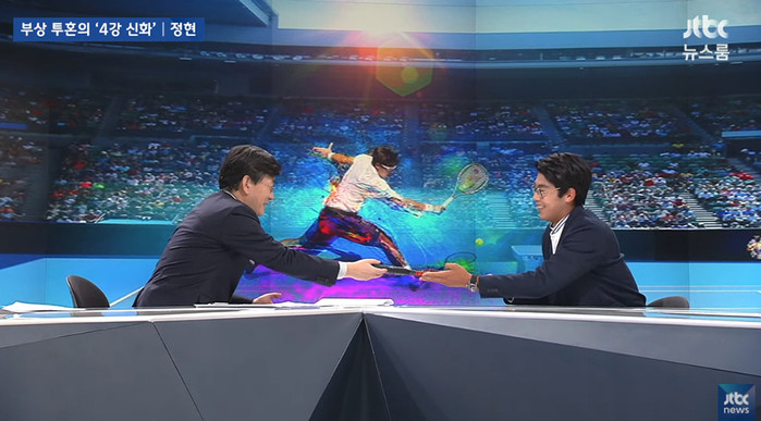 라켓을 보던 손석희 앵커는 "내가 라켓을 받은 것이 뉴스가 될 것 같다"고 말해 웃음을 자아냈다.